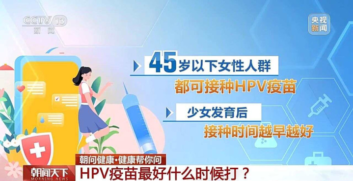 专家表示,45岁以下的女性人群都可以接种HPV疫苗,少女发育后,接种时间越早越好。