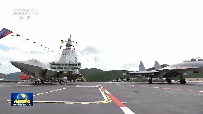 歼-35、歼-15T、空警-600等新型舰载机依次停放